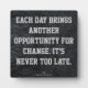 'Each Day Brings Another Opportunity For Change. It's Never Too Late.' Plaque
