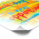 This design features the quote "Each day is a new opportunity" written in a red, blue, orange and red hand lettered calligraphy script on an abstract artistic background.