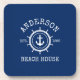 Nautical Anchor Rope Helm Family Name Beach House Navy Blue Coaster