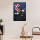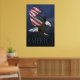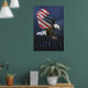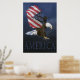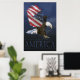 Dramatic American Eagle with USA flags as wings against a dark blue sky. Text at bottom "America". By D. Bennett from Balance America.