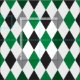 Oversized elegant argyle pattern in school colours of green, white, and black. Perfect for making coordinating accessories or to include in a t-shirt quilt. Design comes in maroon and grey, burnt orange and grey, red and black, green and black, orange and navy, green and yellow, and purple and grey. Matching products available.