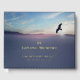 Funeral guestbook with a photo of an eagle soaring over mist-cloaked mountains at sunrise. Personalize with your loved one's name printed in gold foil.