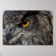 Extreme close up of brilliant orange eagle owl eyes and feathers.