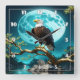 Eagle Perched on a Branch Under Full Moonlight Square Wall Clock