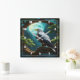Eagle Perched on Branch Under Full Moon Night Square Wall Clock