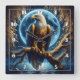 Eagle Perched On Branch Under Full Moon Square Wall Clock