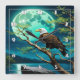 Eagle Perched on Branch Under Full Moonlight Square Wall Clock
