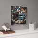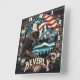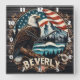 Eagle Perched With Mountains and Flag Background Square Wall Clock