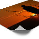 A magnificent eagle sits among the branches silhouetted against the setting sun.
