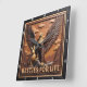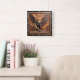 This highly dimensional square wall clock features a close-up illustration of a brown eagle with a determined expression and a white, smiling rabbit sitting closely together. The entire design is rendered in muted brown, tan, and dark leather-like tones, strongly suggesting a deep sculpted relief or Sculpted Leather Look. The eagle is perched on the left, displaying detailed feathers, while the rabbit is on the right, appearing cheerful with long ears and textured fur. They are framed by a prominent, circular wreath of stylized leaves and branches carved into the perimeter. The background features detailed rocky terrain and stylized trees. The large, three-dimensional embossed text "BESTIES FOR LIFE" is carved across the top center in a bold, golden serif font. The clock face features a simple clock face border with large, white, numbered tick marks (1 to 12) integrated into the outer frame. The artwork is surrounded by a thick, dark brown decorative border that resembles a black wood frame.