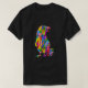 I give wanted to give this a 4 instead of a 5 because these Basic DARK T0shirts run unexpectedly SLIM or Narrow. Which is great if you do not have a potbelly, but I have a paunch. It isn't the shirt's fault that I've got a beer belly. The design and shirt itself is a quality cotton shirt. The color is more of a deep purple, but still a very pretty color. The Basic DARK T-shirts run a bit SLIMMER than the Basic Ts. The neck is a fraction narrower (or seems to be narrower) also. I'm a paunchy middle-aged woman and my neck is 12 inches (31cm) thick and the neckline fell about the same as in the photo of the man, and I had the desire to tug it a bit. So if you're a thick necked man or like loose shirts, be aware these are slimmer shirts. Once I get rid of my lockdown paunch it'll look great. The shirt washed well in cold water with no apparent bleeding. We don't have a dryer, so it hung dry. Did not shrink. Love the colors and the design. The design looks smaller on my shirt than it does on the model on-line. But still, it looks good on the shirt. The printing looks as it does on the model, just the size seems fractionally smaller. Washed garment in cold water, hung dry and design appeared unaffected.