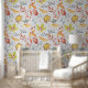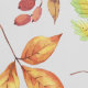 Stylish wallpaper features repeating pattern of early Fall Leaves in oranges and reds with blue berries on a light grey background. Perfect for accent walls and a variety of DIY home projects