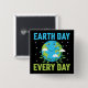 This cute button features a lovely cartoon illustration of our planet with a happy expression and the wording "Earth Day Every Day" in a blue and green all-caps font. This button makes the perfect accessory to raise awareness about environmental protection and to honour our Planet Earth on Earth Day and every day.