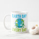 This cute coffee mug features a lovely cartoon illustration of our planet with a happy expression and the wording "Earth Day Every Day" in a blue and green all-caps font. This t-shirt makes the perfect way to raise awareness about environmental protection and to honour our Planet Earth on Earth Day and every day.
