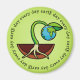 This design features a seedling earth (with roots and soil) on a light green background. The circular text says "earth day every day," repeatedly, so it also appears to say "every day earth day.