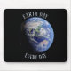 Earth day every day in pale blue uppercase serif font wrapped around an image of planet earth showing asia and oceans and cloud cover view from space. Show your support for environmental protection.