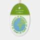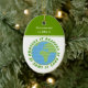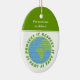 Earth Day custom ornament featuring the planet earth and in and around it the phrases love, protect, respect, save it.