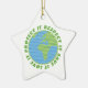 Earth Day custom ornament featuring the planet earth and in and around it the phrases love, protect, respect, save it.