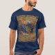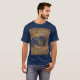 I give wanted to give this a 4 instead of a 5 because these Basic DARK T0shirts run unexpectedly SLIM or Narrow. Which is great if you do not have a potbelly, but I have a paunch. It isn't the shirt's fault that I've got a beer belly. The design and shirt itself is a quality cotton shirt. The color is more of a deep purple, but still a very pretty color. The Basic DARK T-shirts run a bit SLIMMER than the Basic Ts. The neck is a fraction narrower (or seems to be narrower) also. I'm a paunchy middle-aged woman and my neck is 12 inches (31cm) thick and the neckline fell about the same as in the photo of the man, and I had the desire to tug it a bit. So if you're a thick necked man or like loose shirts, be aware these are slimmer shirts. Once I get rid of my lockdown paunch it'll look great. The shirt washed well in cold water with no apparent bleeding. We don't have a dryer, so it hung dry. Did not shrink. Love the colors and the design. The design looks smaller on my shirt than it does on the model on-line. But still, it looks good on the shirt. The printing looks as it does on the model, just the size seems fractionally smaller. Washed garment in cold water, hung dry and design appeared unaffected.