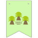 This awesome bunting features a graphic image of three trees that resemble palm trees with large green leafy fronds and a sturdy brown tree trunk. There is a message in brown text to look like soil under the trees. The message says Happy Earth Day.