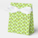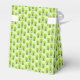 This awesome favour box features a graphic image of three trees that resemble palm trees with large green leafy fronds and a sturdy brown tree trunk. There is a message in brown text to look like soil under the trees. The message says Happy Earth Day.