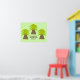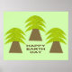 This poster features a graphic image of three trees that resemble palm trees with large green leafy fronds and a sturdy brown tree trunk. There is a message in brown text to look like soil under the trees. The message says Happy Earth Day.