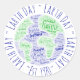 Words describing the beauty and wonder of the natural world and words pertaining to the care of the earth form this earth design. The words "Earth Day" repeat around the central design as well as "Est. 1970." Earth Day first took place in 1970 and has continued annually on April 22 as a demonstration of environmental protection and celebration of our planet.
