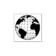 Earth globe with latitude and longitude lines and silhouette map of continents. Icon symbol for international subjects.