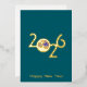 Minimalist design representing the earth in 2026 year in gold on a dark turquoise background