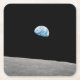 Earth Rising Above The Lunar Horizon. Square Paper Coaster