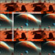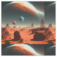 Pictured is a planet Mars landscape with the planet Earth orbiting in the distance