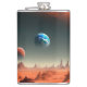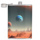 Pictured is the planet Mars with views of planet Earth, moon and Jupiter in this futuristic fantasy art design