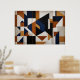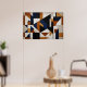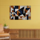 Geometric abstract art with interlocking shapes in navy blue, terracotta, black, and cream. Rich painting texture with subtle vertical details. Modern design ideal for contemporary decor. Brings balance and sophistication to the space with its cubist style and elegant color palette.
