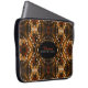 Geometric Tribal Batik inspired fusion in earthy colours of orange, gold yellow and energising glow pattern laptop case with customisable are for two lines of text, suitable for personalising with name, business names or favourite / inspiring and/or motivational quotes