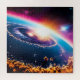 Unfolding before you is a celestial display, marrying the vibrant hues of an earthly storm with the awe-inspiring expanse of the cosmos. The fusion of blues and purples pulls viewers into atmospheric tempests, transitioning seamlessly into the enigmatic universe. Terrestrial and cosmic elements intertwine, weaving a story that connects our world with the stars. This captivating vista narrates tales of raw natural might and stellar wonders, stimulating curiosity, awe, and conversation. It's a breathtaking exhibition of the universe's sublime beauty, encapsulated in a truly extraordinary manner.