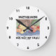 Great quality clock and very well made. Just what I was looking for to finish my hall off. Looked in loads of other websites and eventually found exactly what I was looking for at Zazzle. Designe and colour is perfect. I just love it. Bought the medium size and fits well for where I was placing it.
