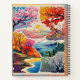 "Experience the ever-changing beauty of the four seasons in perfect harmony. This stunning design combines vibrant outlines of seasonal landscapes, set against a soft, calming background, inviting you to embrace the unique charm of each time of year."