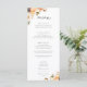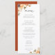 Earthy Watercolor Botanical Autumn Floral Arrangements, wedding menu. Features, modern black typography with terracotta orange colour backing.