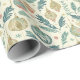 Earthy Blue Pattern Christmas Ornaments And Leaves Wrapping Paper
