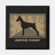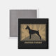Three wooden, earthy tones make up this funky Doberman Pinscher merchandise. The dog breed's silhouette is in the centre, with radical angles in the background. Below is the breed name. Cool Doberman gifts for dog lovers.