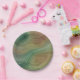 Earthy Emerald Strata | Green and Golden Ink Agate Paper Plate