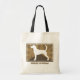 This awesome English Foxhound tote bag has a natural, earthy feel. The dog breed's silhouette is in the middle, with rays of different colours in the background. Underneath is printed the hound name. Cool English Foxhound gifts for pet lovers.