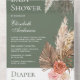 Amaze your guests with this elegant baby shower invite featuring beautiful pampas grass and earthy flowers with detachable diaper raffle card. Simply add your event details on this easy-to-use template to make it a one-of-a-kind invitation.