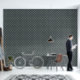 Unique earthy charcoal grey black with terracotta dots, geometric, triangles, deep earthy colours, modern peel and stick wallpaper for uniqe home decor accent walls, or other surface treatments on bookshelves, credenzas and more!