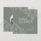 Earthy Olive Damask Elegant Classic Photo Wedding Save The Date