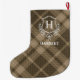 Earthy Plaid Monogram Initial Tartan Large Christmas Stocking
