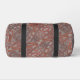 A Boho Chic Duffel Bag with a natural abstact design of earthy red burnt sienna and grey. Two different unique patterns on the sides and ends. Personalise one end with a Monogram or 2 or 3 Initials within a highlighting circle.