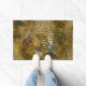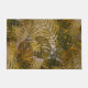 Tropical plants (palm fronds, monstera leaves) pattern in rich earth tones of green, ochre (deep yellow) and browns.
