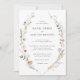 The invitation showcases a delicate floral wreath, beautifully composed of watercolor wildflowers and greenery. This enchanting arrangement captures the essence of a rustic meadow, adding a touch of natural elegance to your wedding details.