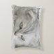 The cushion is small to medium sized. It can be washed. It is well constructed. The material used is pleasant and feels decent quality. It has a very slight plush feel which is good. It is well labelled and its care clearly stated. Theres nothing not to like about it. All in all a good item. The deduction of one star overall is due to long delays in delivery to the UK. It's not clear if this was due to Zazzle or somewhere else in the chain as I did not receive status updates of dispatch or progress. I cannot comment anymore on that other than to say that was our experience but it may not be the same for you. The printing was surprisingly close to what we were expecting. Its an art piece and on material so its hard to assess the precision of printing but it seems close to the original. The soft lines are reproductions of the original. The colour is a fair reflection of the painting. This was printed in the US and it looks like US quality. No issues.
